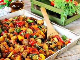 Lavate e pelate le verdure, tagliate a cubetti le patate, a rondelle le carote e le zucchine e dividete i pomodori a metà. Mettete le verdure in una ciotola e condite con olio e sale. Preparate la panatura con il pangrattato, il parmigiano, il pepe e gli aghetti di rosmarino. Ponete le verdure in una teglia ricoperta da carta da forno e cospargete di panatura e un filo d’olio. Mettete in forno a 200g per 30 minuti, gli ultimi in modalità grill.