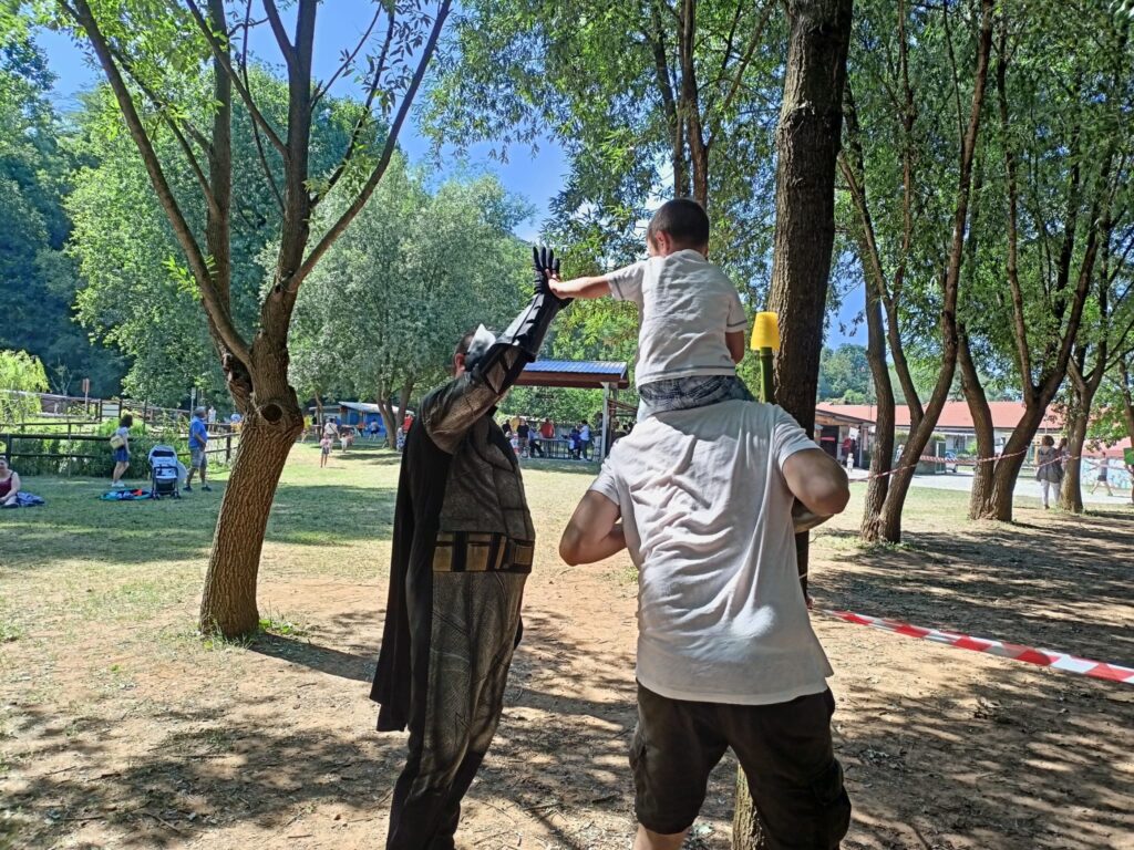 Così, nell’area verde di Calipolis si è svolta una pericolosissima corsa nelle carriole con papà spericolati che andavano a 100 km all'ora... Staffetta, torte in faccia con panna a volontà, labirinto magico, corsa nei sacchi...