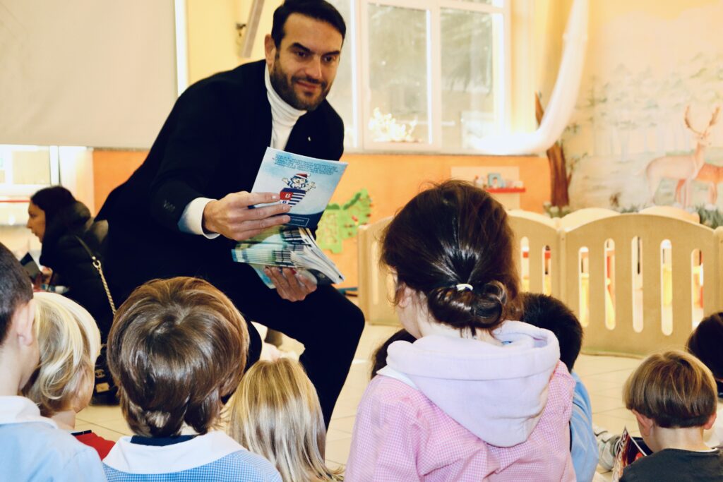 Carichi di emozione, i bambini hanno atteso l’arrivo del Tigrotto in salone, dove hanno potuto salutare la mascotte accompagnata dal mister della Prima Squadra, il nostro Riccardo Colombo il quale ha portato ai bambini il saluto della squadra omaggiandoli del fumetto narrante proprio le avventure del Tigrotto.