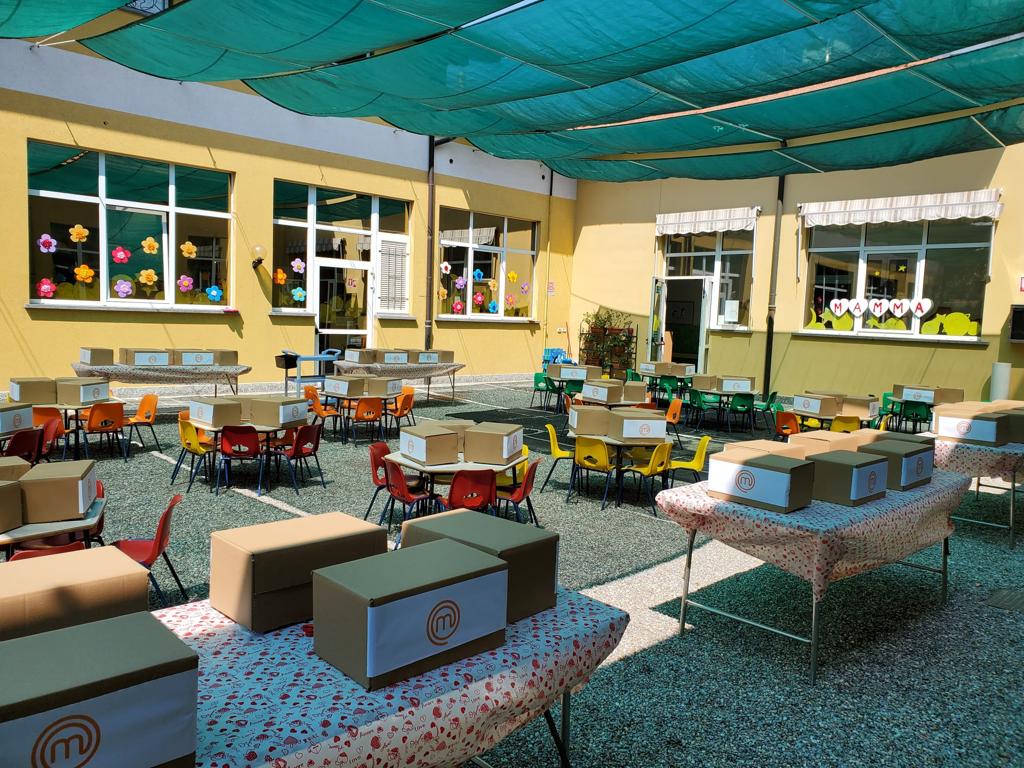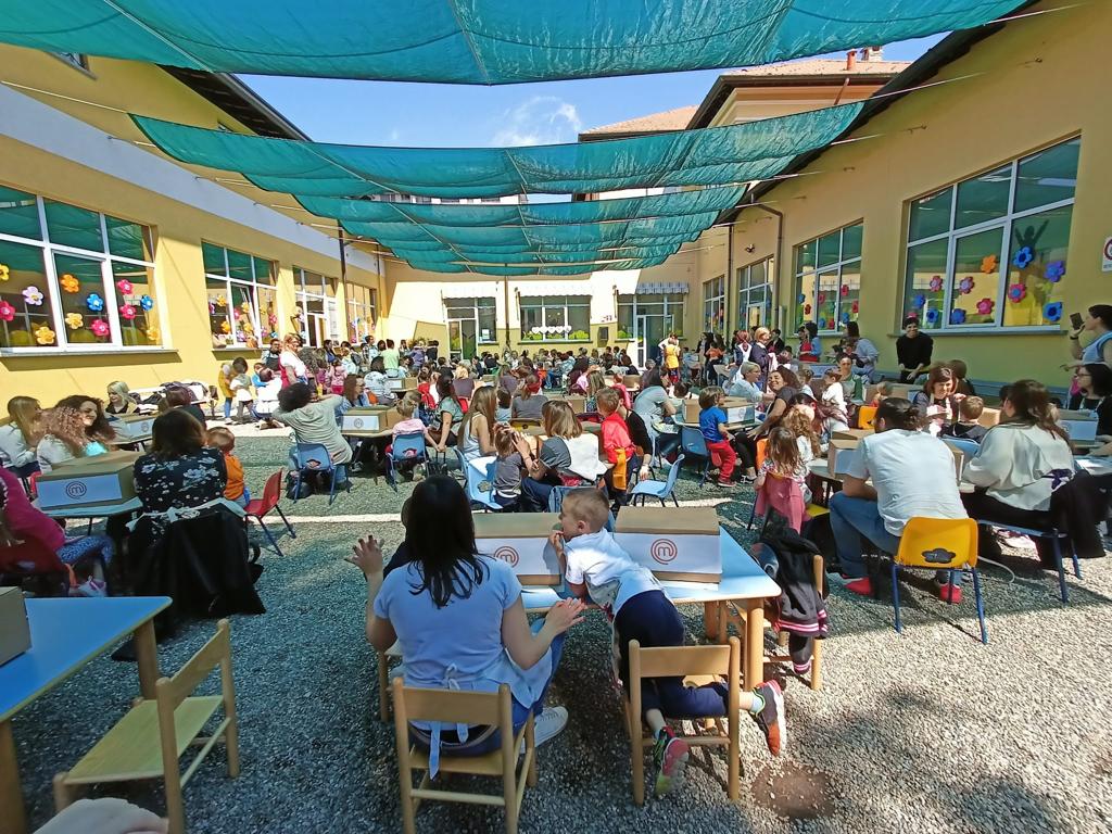Alle 15 di un pomeriggio di sole, le porte del nostro giardino si sono aperte per accogliere le mamme dei nostri bambini: al loro ingresso si sono trovate davanti ad una vera e propria cucina di MasterChef; sui tavoli, ad attenderle, 125 Mistery Box contenenti gli ingredienti segreti di una ricetta a sorpresa!