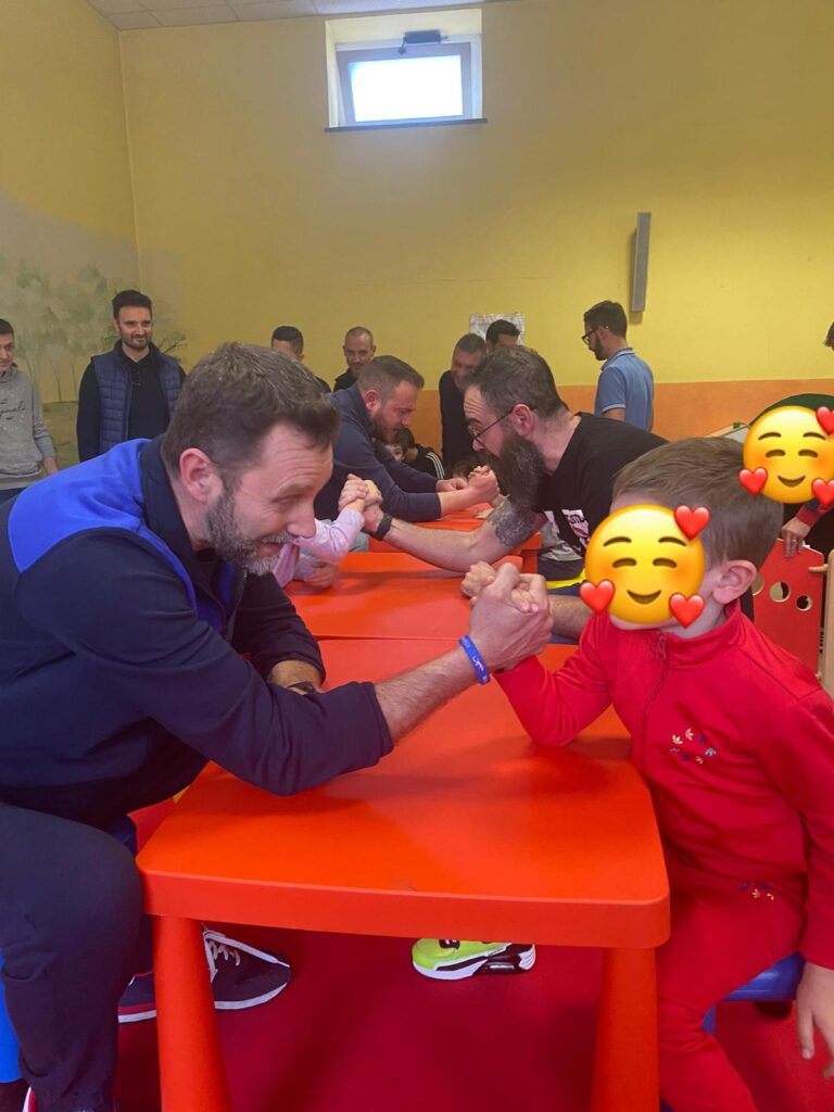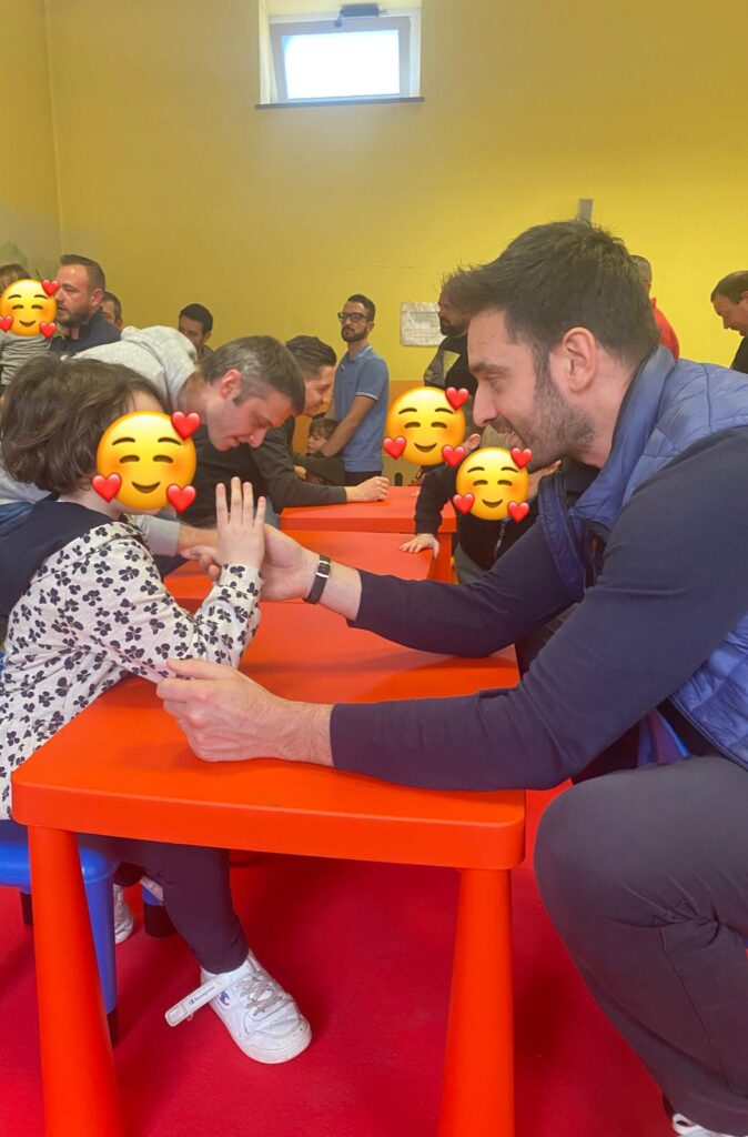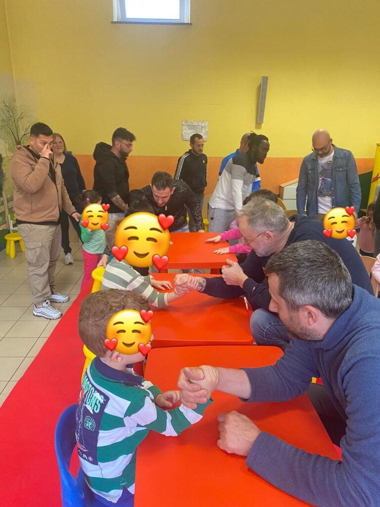 È stato un pomeriggio semplice e conviviale, scandito da giochi, divertenti penitenze e un po' di ginnastica per sgranchirsi le gambe. Poi, ci siamo emozionati, occhi negli occhi, con i nostri bimbi sulle note di un canto speciale (e le lacrime non sono mancate!). È stato bello vedere il nostro salone così gremito, così "caldo", e questo ci ha fatto ricordare che un uomo è grande, grande davvero, quando ritorna nuovamente bambino!